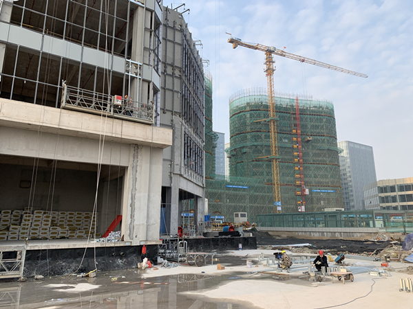 當(dāng)前,未來科技城施工人員人人爭分奪秒、拼搏鏖戰(zhàn)。截至目前,未來科技城項目南區(qū)一期工程C1、C2C33幢樓已竣工投用,B1樓和D1-D4樓已竣工。A區(qū)幕墻龍骨正在安裝,B2、B3樓幕墻主樓玻璃安裝完成70%。室外,雨、污水、消防管道、電力管道正有序鋪設(shè),道路基夜間加班施工,亮化工程、智能化、暖通等附屬配套工程緊密配合內(nèi)裝工程進度穿插同步實施。整個南區(qū)項目確保于20208月底前全部竣工并投入使用。北區(qū)工程4月開標(biāo),計劃20223月竣工。