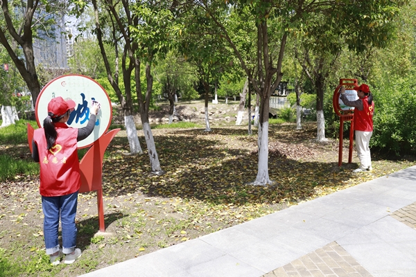 同時,志愿者們還開展形式多樣的環(huán)境保護(hù)行動,有的拿著掃把清掃散落的樹葉,有的用鉗子揀拾丟棄在道路兩旁的煙頭、紙屑、塑料袋垃圾、雜草等,有的擦拭公園宣傳專欄,經(jīng)過近2個小時的全面清掃后,公園道路干凈整潔,環(huán)境煥然一新。