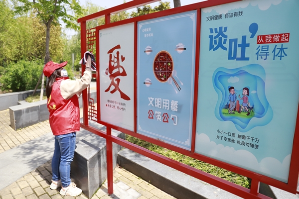 活動現(xiàn)場,通過設(shè)置展板,發(fā)放宣傳材料等宣傳形式,志愿者們向廣大居民普及愛國衛(wèi)生運(yùn)動的歷史和意義,宣傳個人衛(wèi)生、飲食衛(wèi)生、環(huán)境衛(wèi)生等知識,進(jìn)一步提高群眾的健康衛(wèi)生意識,促使大家養(yǎng)成健康、文明的生活行為方式,營造人人關(guān)心、人人參與愛國衛(wèi)生運(yùn)動的良好氛圍。