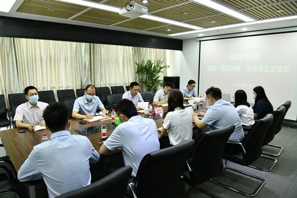 8月21日下午,繼全區(qū)“百日沖刺”動員大會后,鹽城東方集團(tuán)在11樓1115會議室召開集團(tuán)內(nèi)部招商“百日沖刺”動員暨出征儀式大會。集團(tuán)黨委書記、董事長、總經(jīng)理王旭東主持會議,招商條線全體成員參加會議。