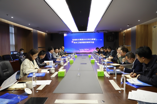 近年來(lái),鹽城東方集團(tuán)投資建設(shè)項(xiàng)目數(shù)量多、體量大,防水工程涵蓋房屋建筑工程、防護(hù)工程、市政道路及通道、隧道等工程,防水面積達(dá)四十多萬(wàn)平方米,防水等級(jí)要求較高。為進(jìn)一步加強(qiáng)建筑工程防水工程質(zhì)量管理,11月10日,集團(tuán)黨委委員、副總經(jīng)理王成林在集團(tuán)7樓1號(hào)會(huì)議室主持召開(kāi)鹽城東方集團(tuán)三季度防水工程質(zhì)量控制研討會(huì),特邀請(qǐng)知名防水品牌技術(shù)專(zhuān)家就防水工程質(zhì)量控制、技術(shù)難點(diǎn)痛點(diǎn)等方面問(wèn)題進(jìn)行研討交流。