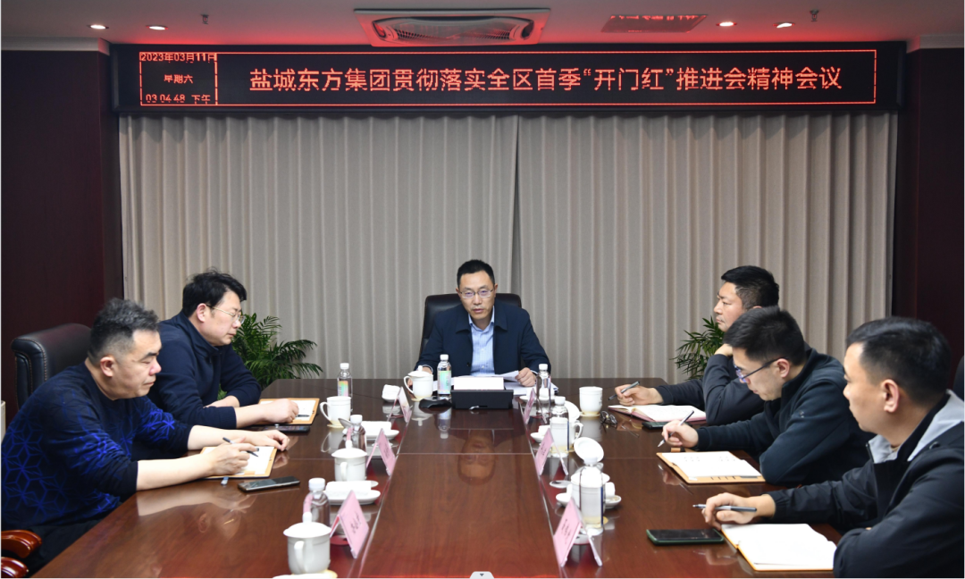 3月11日上午全區(qū)首季“開門紅”推進(jìn)會(huì)結(jié)束后,鹽城東方集團(tuán)于當(dāng)天下午立即組織傳達(dá)學(xué)習(xí)會(huì)議精神,并結(jié)合實(shí)際研究部署下階段重點(diǎn)工作。集團(tuán)黨委書記、董事長、總經(jīng)理王旭東主持會(huì)議并作工作部署,集團(tuán)領(lǐng)導(dǎo)班子成員及集團(tuán)辦公室、督查辦等部門負(fù)責(zé)人出席會(huì)議。