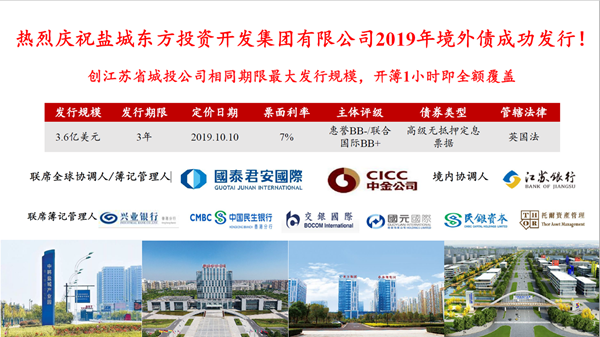 由于始終堅(jiān)持精誠(chéng)合作,該集團(tuán)現(xiàn)已成為許多銀行和金融機(jī)構(gòu)、眾多投資人的戰(zhàn)略合作伙伴,直接融資占比50%左右;南京銀行已將其納入總行級(jí)戰(zhàn)略客戶,該集團(tuán)成為江蘇銀行前十大授信合作單位;繼2016年在全市首家發(fā)行3億元境外債后,該集團(tuán)今年10月在香港成功發(fā)行第二單、3年期3.6億美元境外債一次性募集到位,為江蘇省同類(lèi)型、同期間最大發(fā)行規(guī)模。